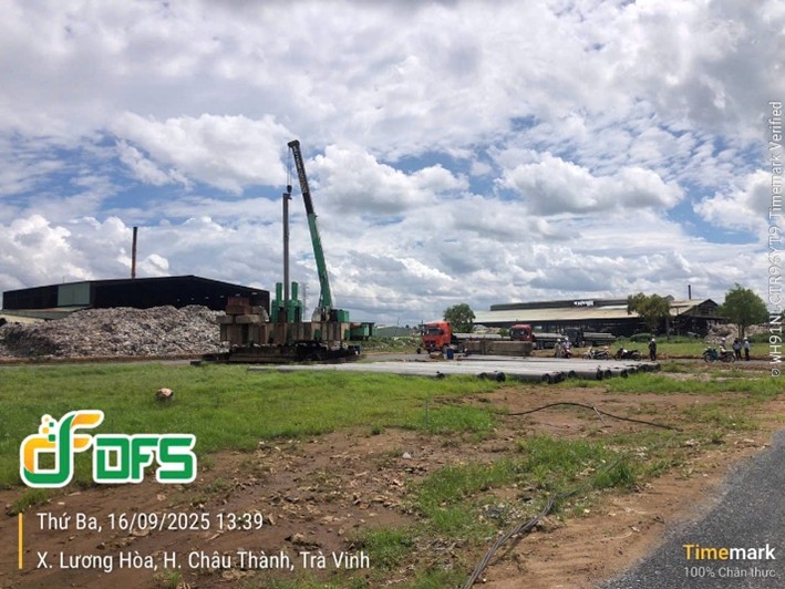 On September 16, 2025, DFS Construction Group Joint Stock Company (DFS) officially commenced large-scale pile driving works for the Tra Vinh Solid Waste Treatment Plant project, located in Sam Bua Hamlet, Song Loc Commune, Vinh Long Province. This marks a significant milestone, signaling the transition from the preparatory phase to the official construction phase, with an accelerated and synchronized schedule.