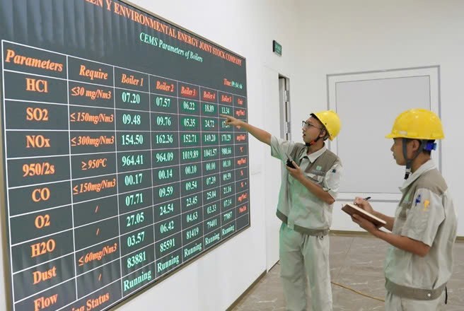 The waste treatment process is carried out in a closed and safe manner from the steps of receiving waste, storing it in a waste tank to mixing and drying it before putting it into the incinerator, the heat obtained when burning waste is used to generate electricity and then transmitted to the national power system to serve socio-economic development.