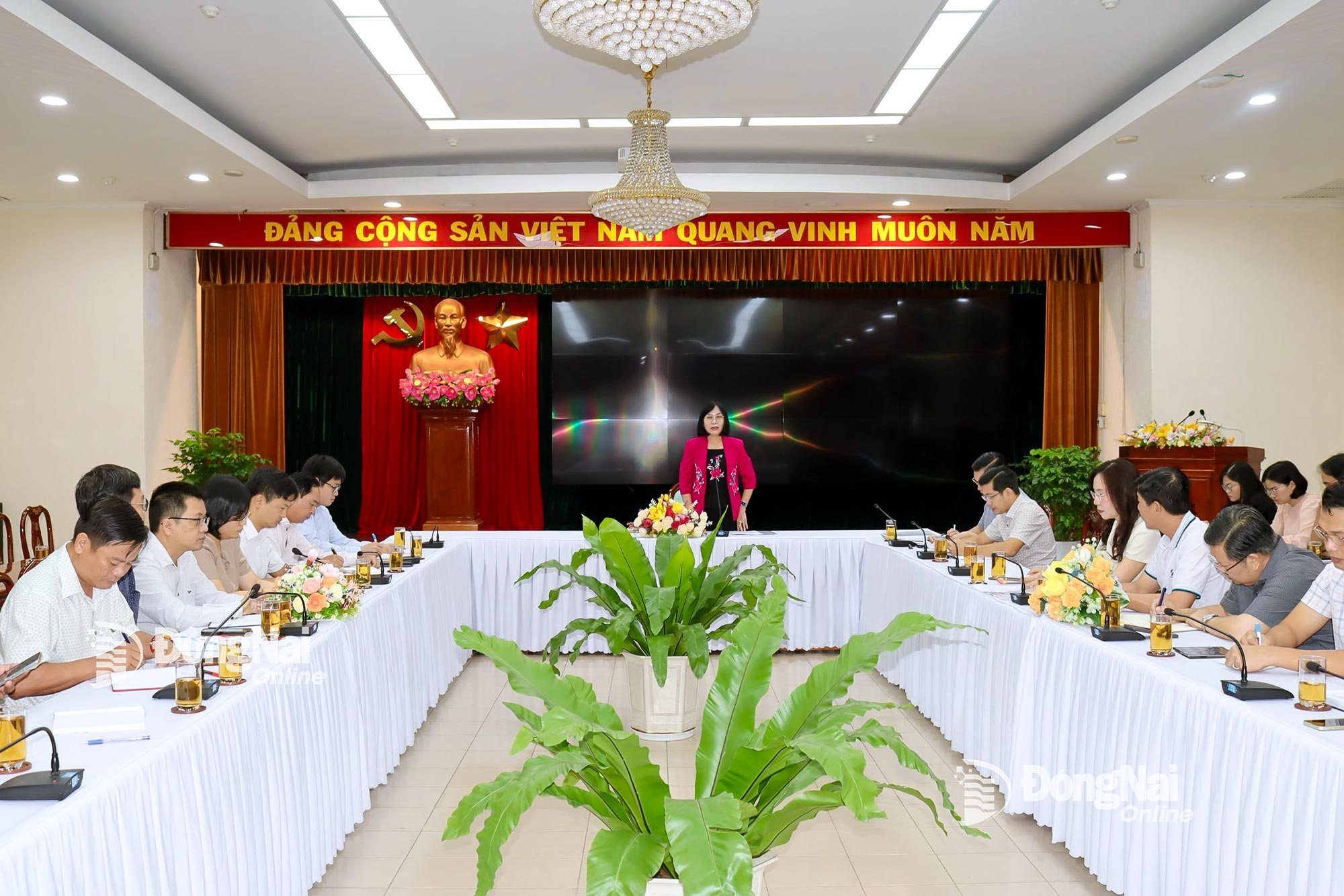 Ms. Nguyen Thi Hoang, Provincial Party Committee member and Vice Chairwoman of the Dong Nai Provincial People's Committee, spoke at the working session.
